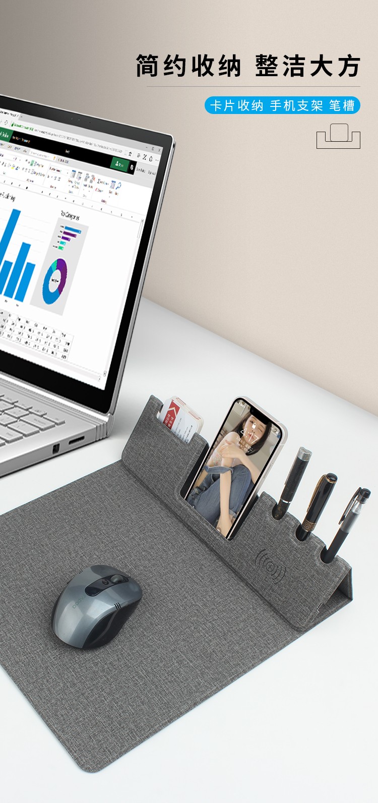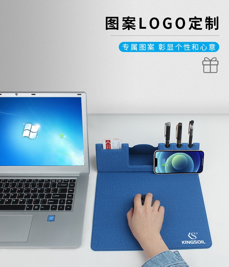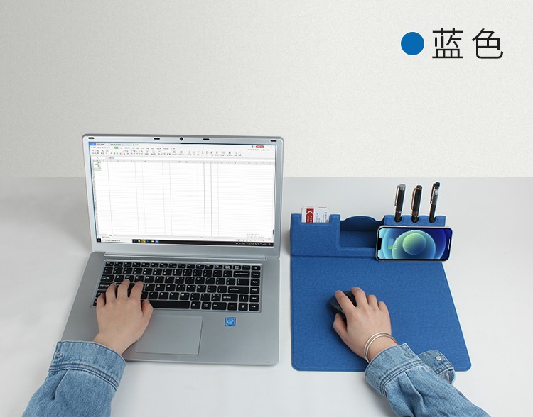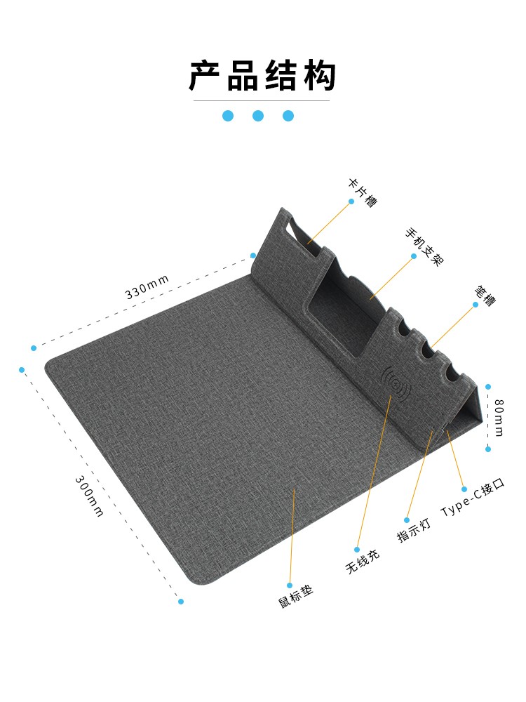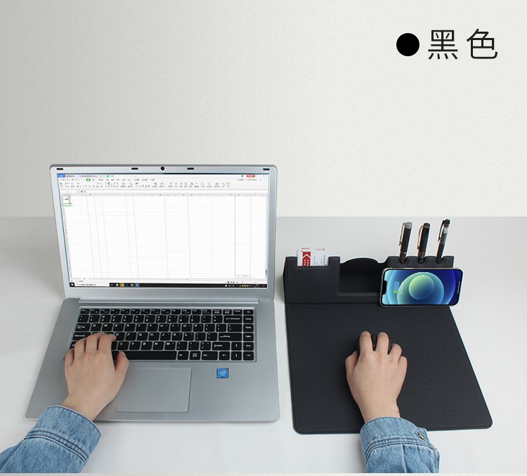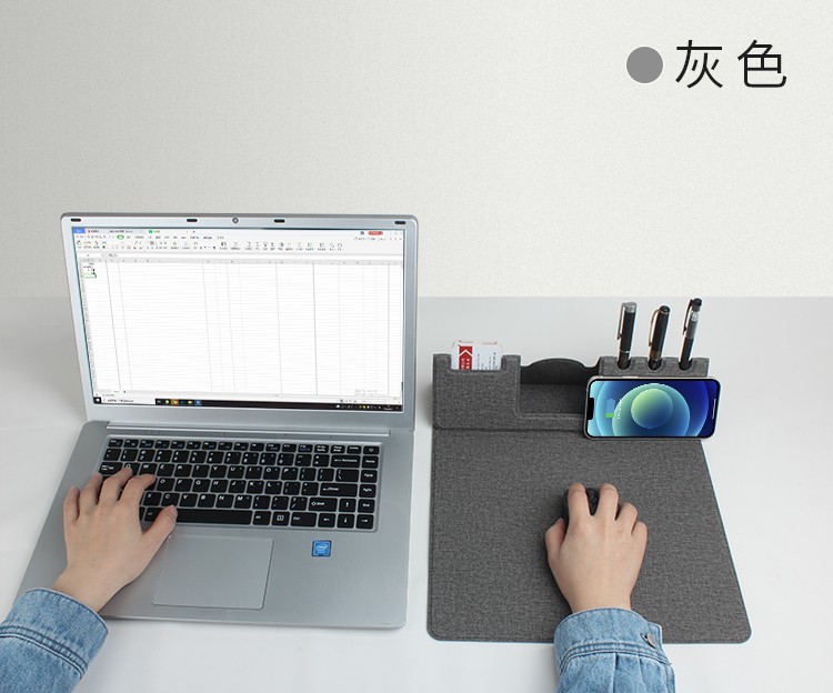 支架款無線充鼠標墊,手機一放,立即充電,給手機提供支架,布面,表面細膩、平整、操作穩(wěn)定,底部淺絨,防滑穩(wěn)固