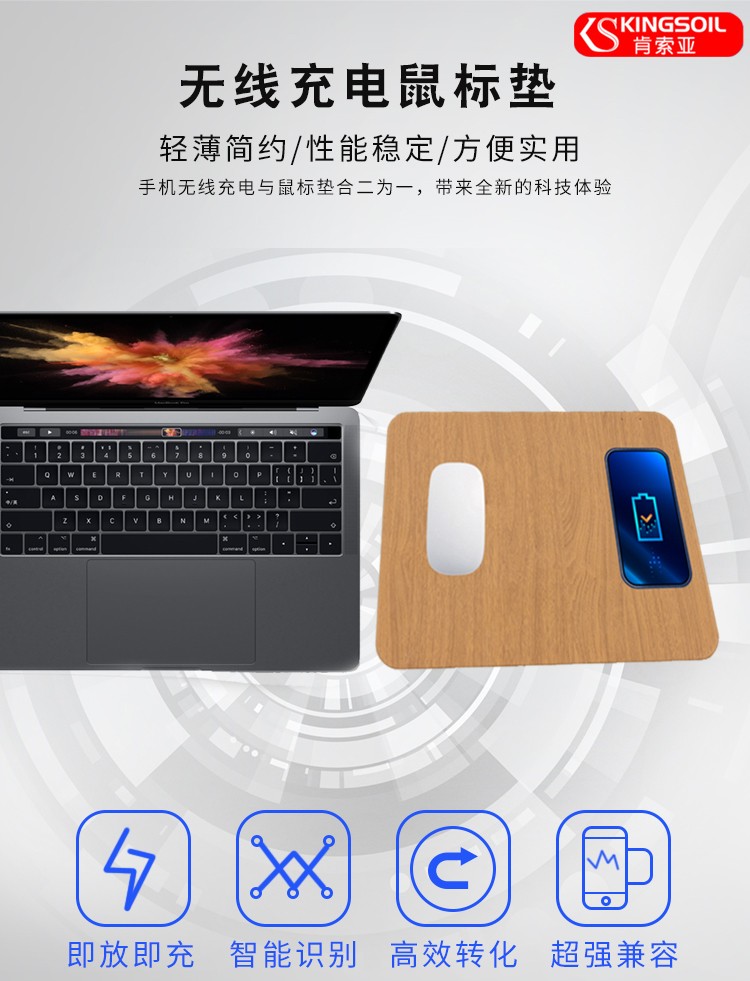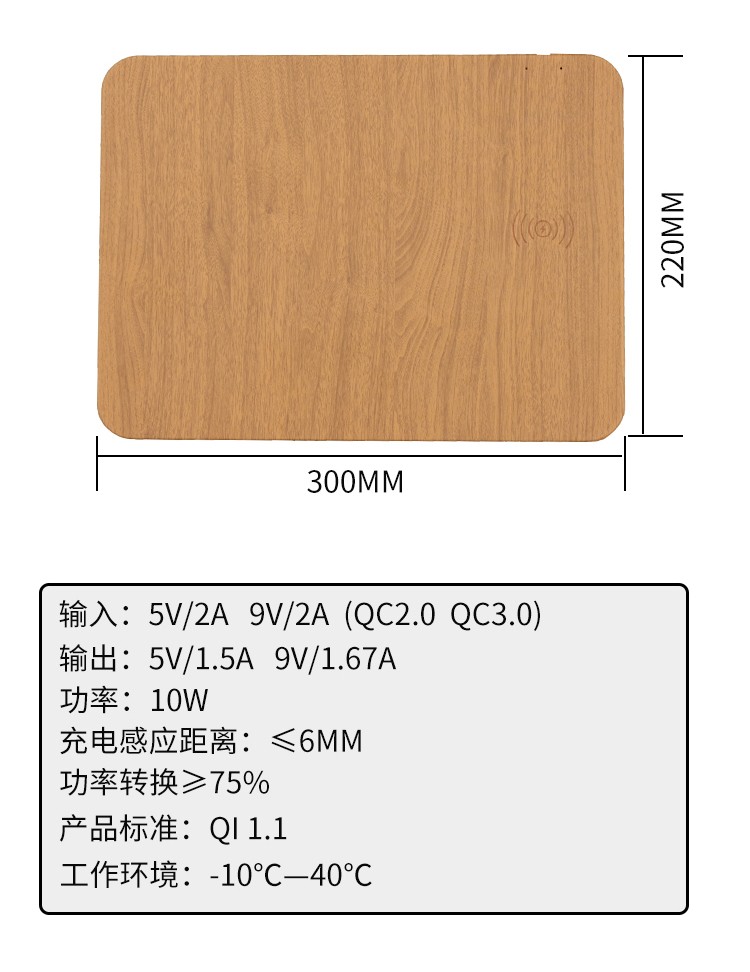 木紋款無(wú)線(xiàn)充鼠標(biāo)墊,手機(jī)一放,立即充電,表面PU,表面細(xì)膩、平整、操作穩(wěn)定,底部淺絨,防滑穩(wěn)固