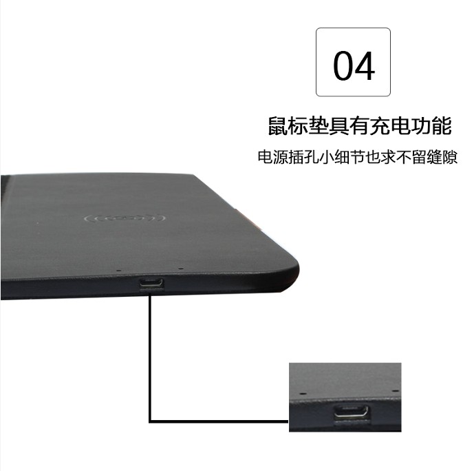 無線充鼠標(biāo)墊,手機(jī)一放,立即充電,織物面料編織,表面細(xì)膩、平整、操作穩(wěn)定,帶燈光切換按鍵,輕輕一按,燈光可自由切換,加厚橡膠底部,穩(wěn)固防滑