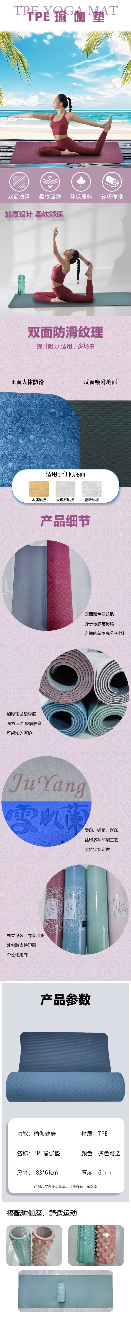 雙色TPE瑜伽墊加長(zhǎng)女生專用健身墊防滑瑜珈墊子地墊家用 可印logo