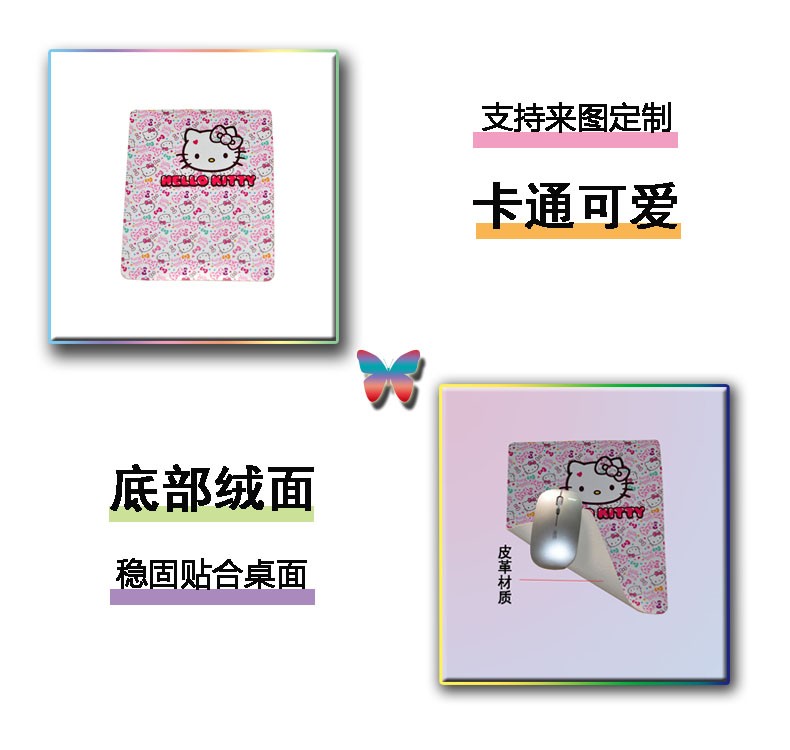 廠家現(xiàn)貨卡通貓咪皮革鼠標墊辦公 學生電腦書桌墊 皮革防水鼠標墊