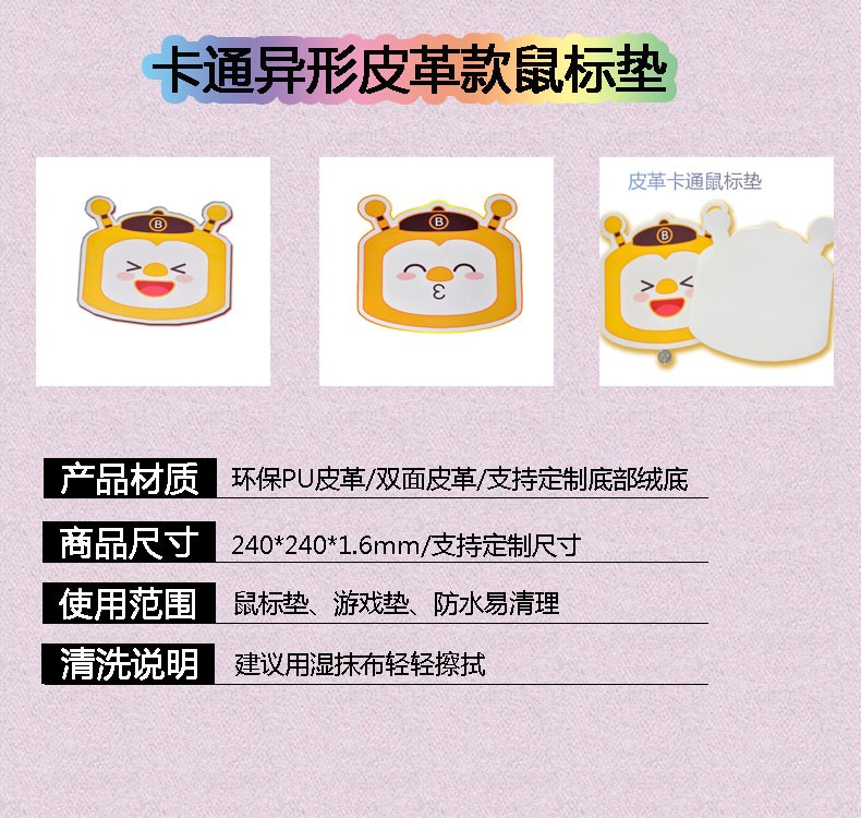 異形皮革鼠標(biāo)墊,卡通可愛(ài)外形,PU材質(zhì),防水耐臟,雙面皮革,貼合桌面