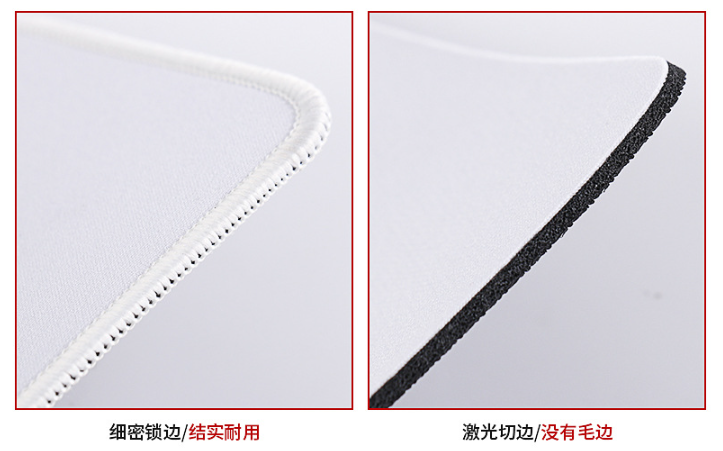 橡膠鼠標墊邊緣處理采用:激光刀模切邊、 鎖邊、先鎖邊后印刷