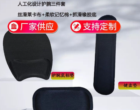 通亞護腕鼠標墊新推出的護腕產品三件套采用了人工化設計,由護腕鼠標墊、鍵盤墊、手托墊三種墊子組成。